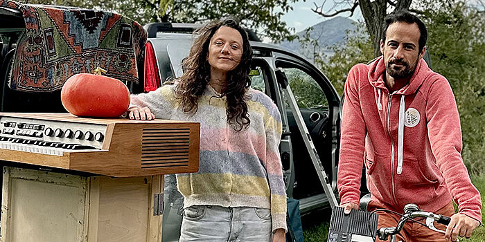 C’est l’histoire d’une rencontre entre une vocaliste clown incroyable, Leïla Martial, et un pianiste voyageur, Elie Dufour.