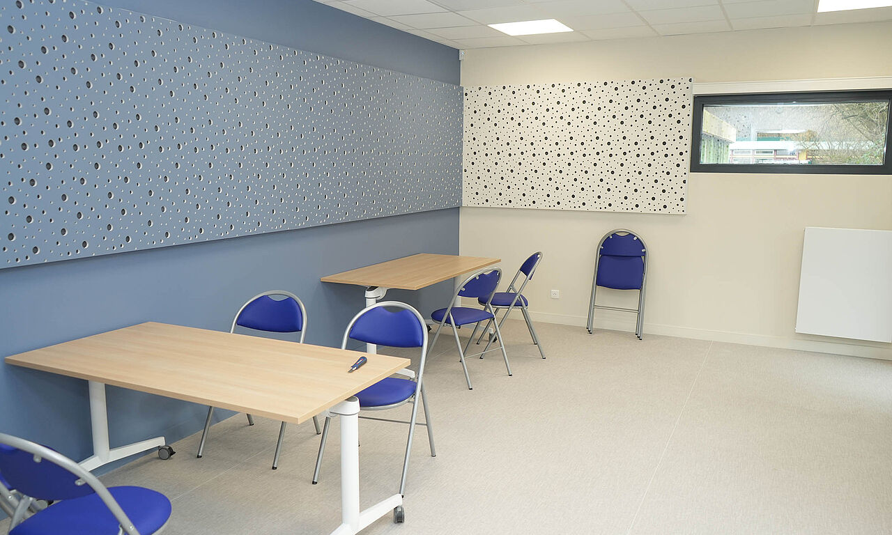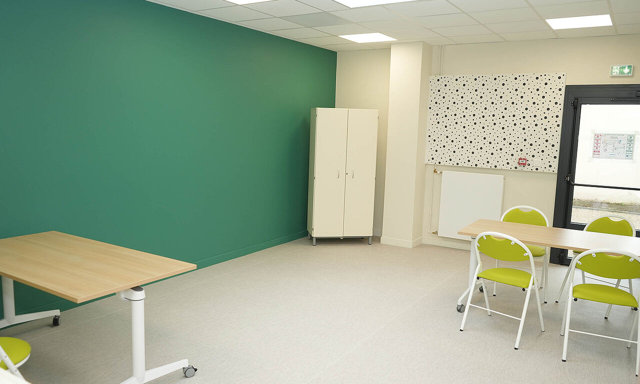 7 salles de cours, d’une surface de 25 à 40 m2, et une salle de grands ensembles modulable composent désormais cet équipement de proximité ouvert sur la ville. S’y ajoutent des locaux d’accueil et administratifs plus fonctionnels.