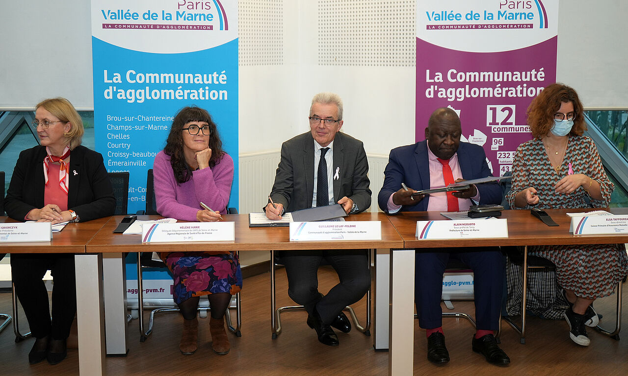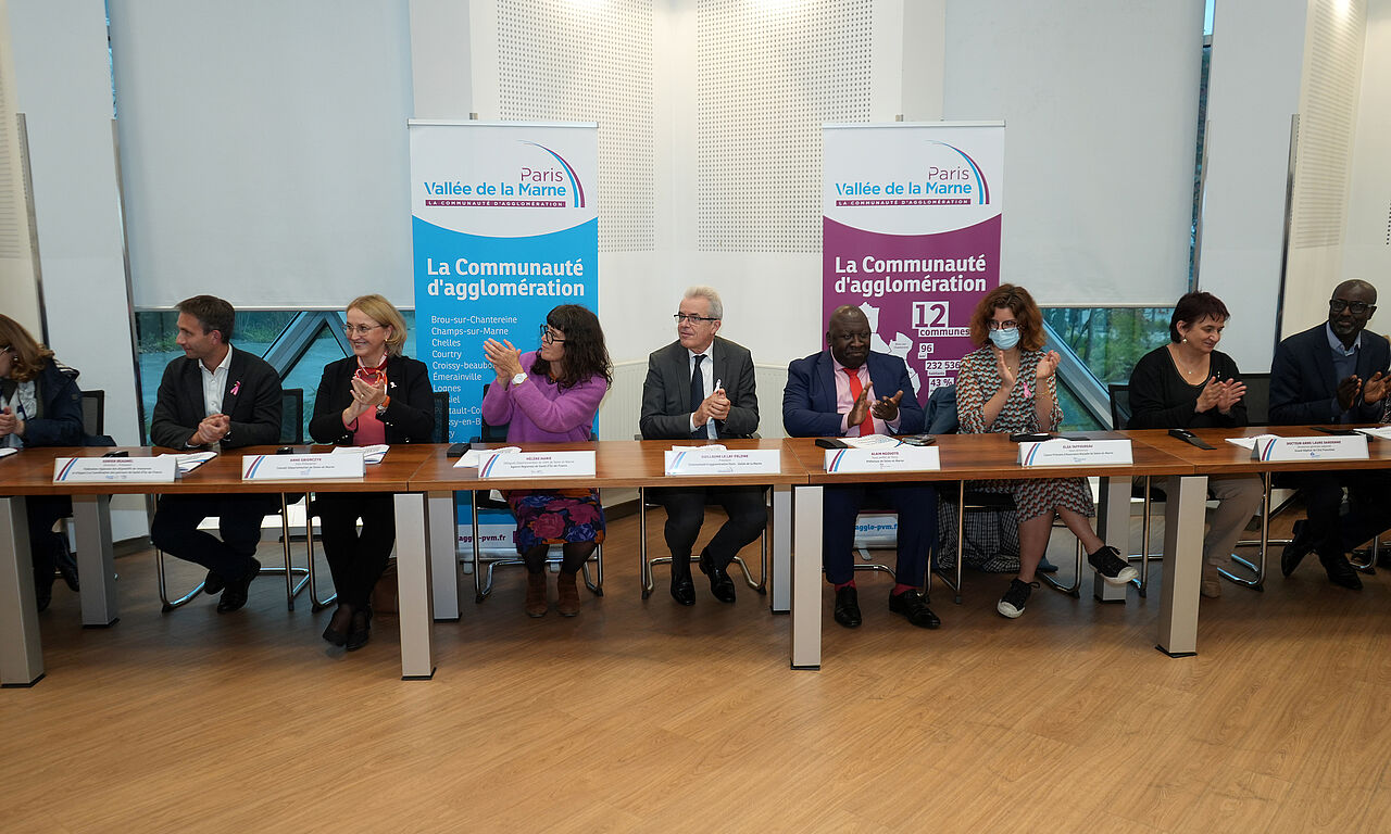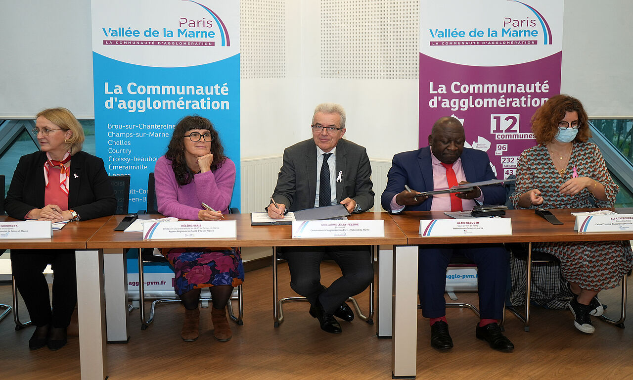 Enfin, le CLS 2e génération a obtenu le renfort de nouveaux partenaires qui apporteront leur expérience et leur expertise aux signataires historiques que sont l’Agglomération Paris-Vallée de la Marne, la Préfecture, l’Agence régionale de Santé et le Conseil départemental. Autour de Guillaume Le Lay-Felzine, président de Paris - Vallée de la Marne, d’Alain Ngouoto, sous-préfet de Torcy, d’Hélène Marie, déléguée départementale de l’Agence régionale de Santé (ARS), et d’Anne Gbiorczyck, vice-présidente du Conseil départemental chargée de l’enfance, de la famille et de la présence médicale, se trouvaient ainsi les représentants de la Caisse primaire d’Assurance maladie (CPAM) 77, des Communautés professionnelles territoriales de Santé (CPTS) du Val-Maubuée et de l’Ouest Briard, du Grand hôpital de l’Est-francilien (GHEF), du Dispositif d’appui à la Coordination (DAC) Nord 77, du Réseau d’échange et d’accompagnement contre les violences intrafamiliales (REAVIF) et de la Mission locale de Marne-la-Vallée.