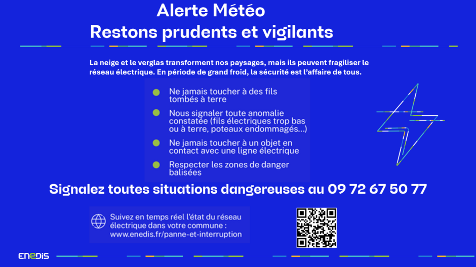 Message de prudence d’Enedis en cette période de neige et de verglas : un seul mot d’ordre : la sécurité.