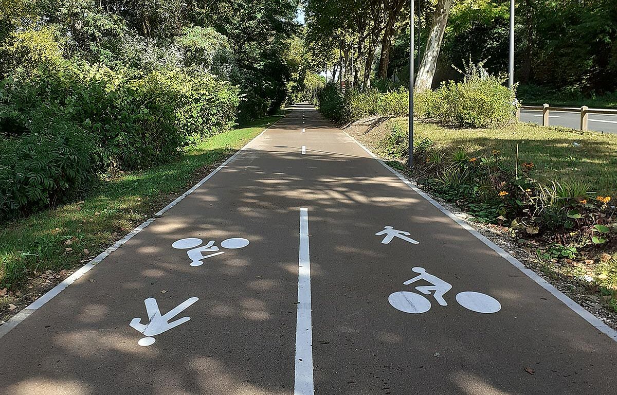 Entre Torcy et Vaires-sur-Marne, des pistes cyclables unidirectionnelles de 2,50 mètres de large ont été réalisées par l’Agglomération le long de la RD34a.