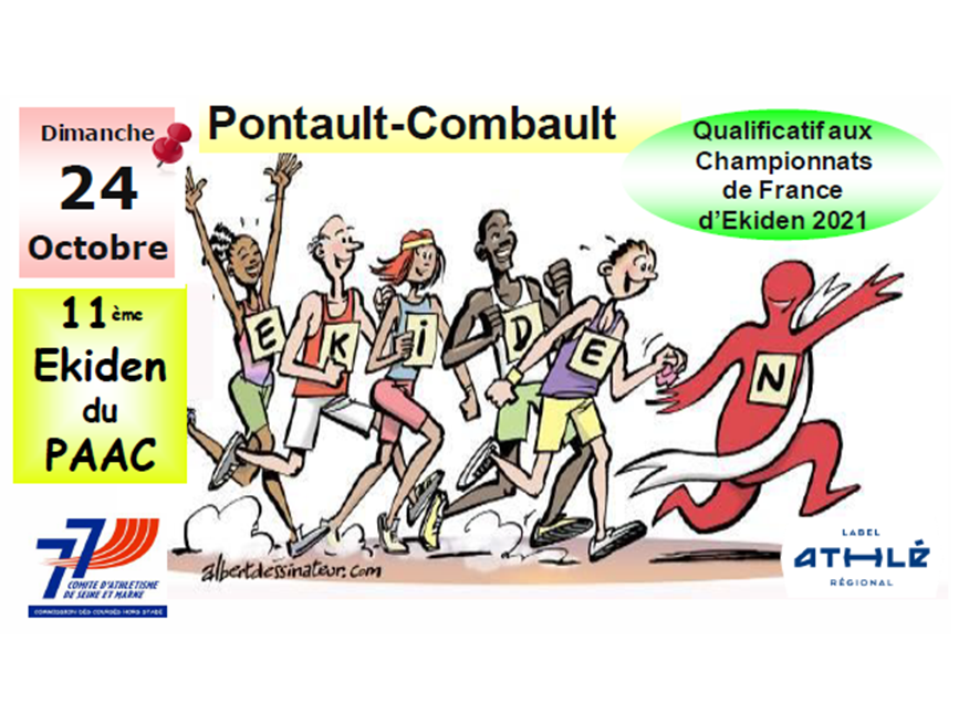 La 11e édition du Ekiden du PAAC aura lieu dimanche 24 octobre à Pontault-Combault (départ Décathlon Pontault-Combault). Une course conviviale, ouverte à tous (athlètes, licenciés FFA, entreprises ou non), permettant une qualification aux championnats nationaux.