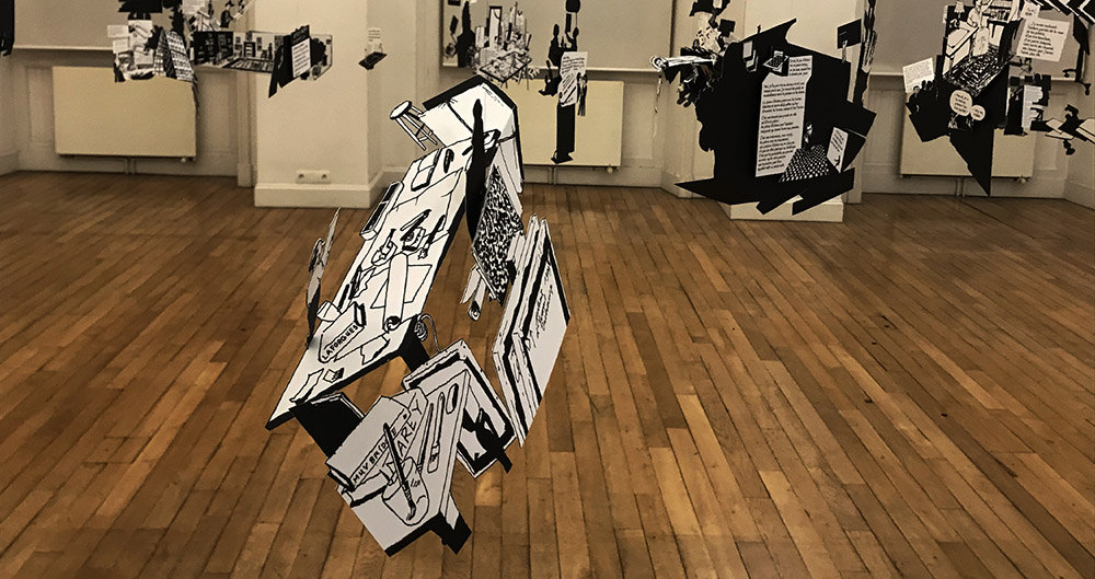 Après avoir réalisé une biographie de Marcel Duchamp enbande dessinée (Marcel Duchamp - Un petit jeu entre moi et je, Centre Pompidou / Actes Sud, octobre 2014), François Olislaeger fait sortir le personnage pour l'emmener aux Églises de Chelles. Sous la forme d'un immense mobile, il donne à lire des passages de la vie de Marcel Duchamp, et invite le visiteur à lire une bande dessinée en trois dimensions.