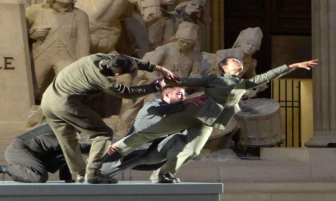 Dans une chorégraphie de l’effacement, quatre danseurs évoluent dans un dernier mouvement imperceptible, une lente érosion fascinante, accompagnés d’une fresque musicale sonore envoûtante, aux résonnances physiques, historiques et organiques.
