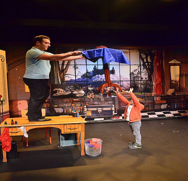 Complicité, participation, humour, tendresse, suspens, blagues, gags, gaffes, gaufres, tous les ingrédients sont là, avec des tours de magie époustouflants, de la grande illusion spectaculaire, et aussi des trucs complètement débiles… Pour la plus grande joie des enfants et de leurs parents !