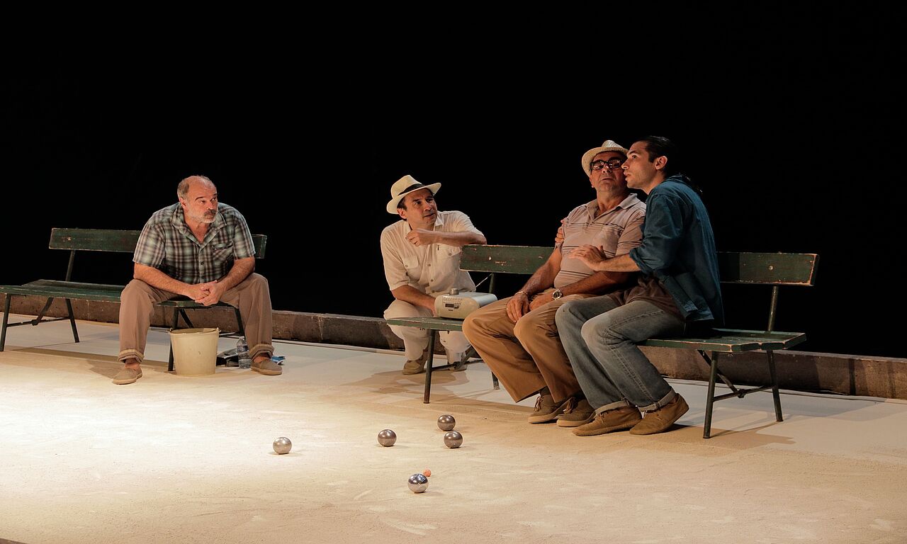Quatre joueurs sont en scène dans cette partie de pétanque de tous les dangers :