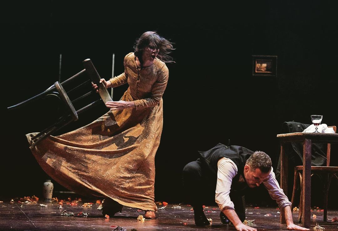 D’après le chef-d’oeuvre d’August Strindberg Traduction Terge Sinding Mise en scène Julie Brochen Interprétation Anna Mouglalis, Xavier Legrand, Cécile Auxire-Marmouget Création lumière Louise Gibaud Scénographie et costumes Lorenzo Albani Création sonore Fabrice Naud