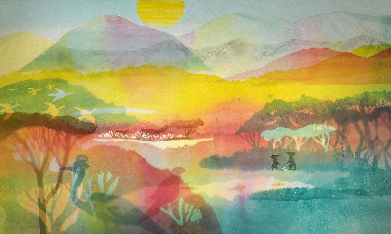 Irène Bonacina est illustratrice pour la littérature jeunesse depuis 2009. La transparence des encres couleurs, le fusain, la gravure, lui permettent d’explorer des univers variés et de chercher à la fois la finesse du trait et la matière. Les images de son album Nos chemins sont des collages papiers vus en transparence sur une boîte lumineuse. L’exposition propose une immersion dans le processus de création et l’univers de l’autrice-illustratrice.