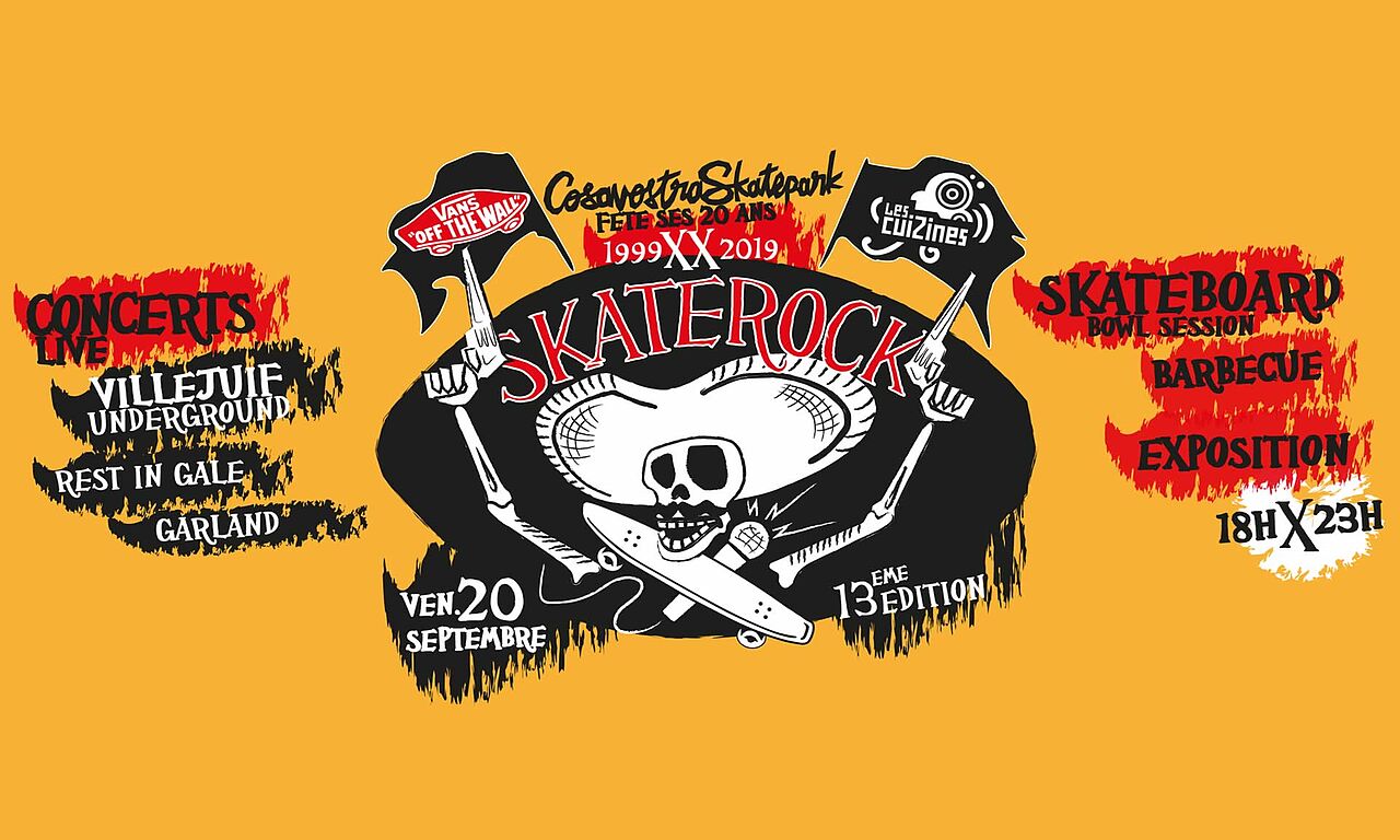 Pour la 13ème année à Chelles, le CosaNostra Skatepark (Tribe Skateboard Club) et Les Cuizines s’associent. Au programme, free skate sessions, exposition photo, barbecue convivial, et concerts. La programmation qui rend hommage à la scène rock, allant du garage rock du Villejuif Underground, au art rock de Rest in Gale vers le shoegaze de Garland. Un moment convivial et de rencontres autour du nouveau bowl du skatepark, qui célèbre aussi ses 20 ans.
