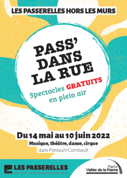 ÉvénementPass' dans la rueDu 14 mai au 10 juin 2022, Les Passerelles vous propose des spectacles gratuits en plein air.PDF - 2,2 Mo Télécharger